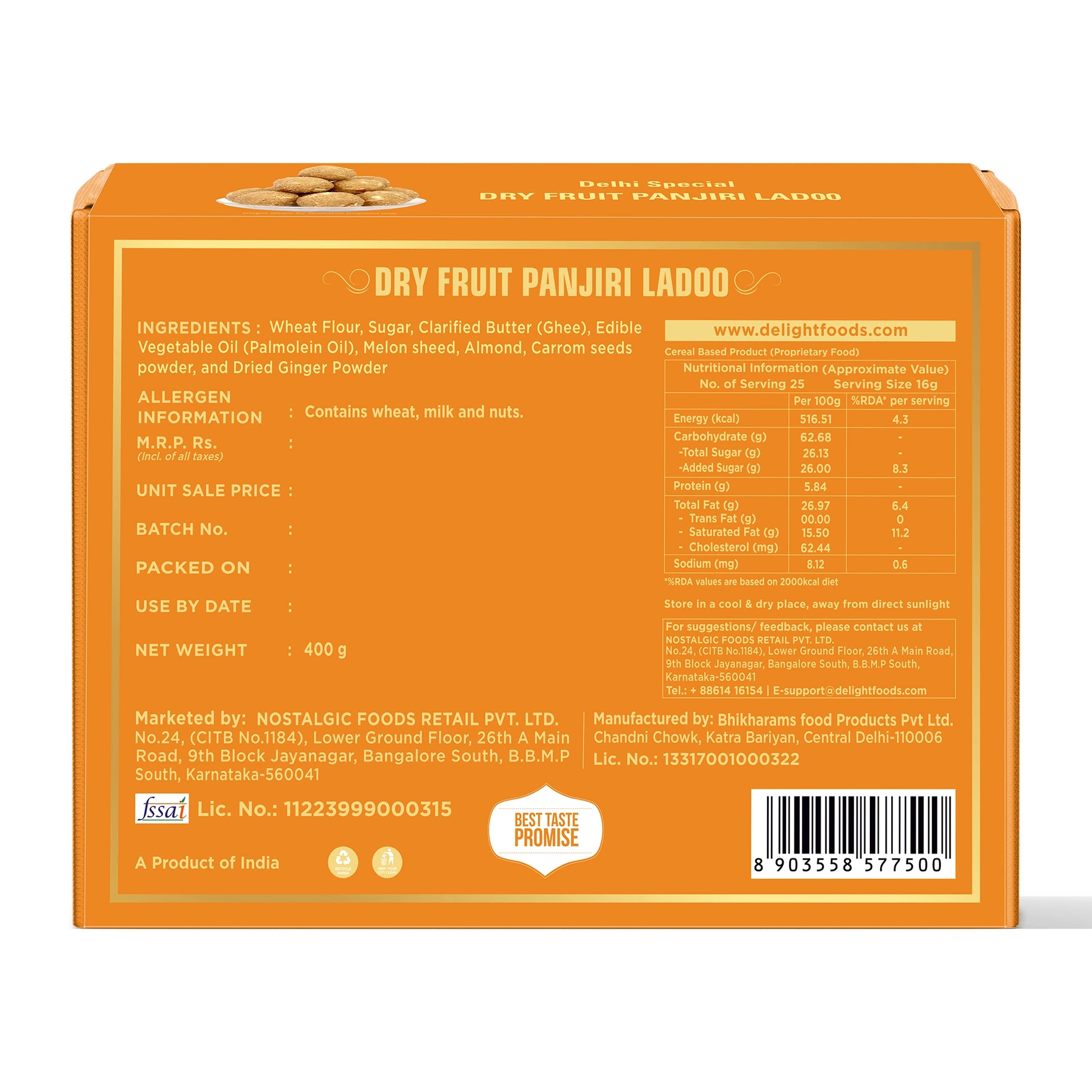 Ingredients - Wheat Flour, Sugar, Pure Desi Ghee (Clarified Butter),